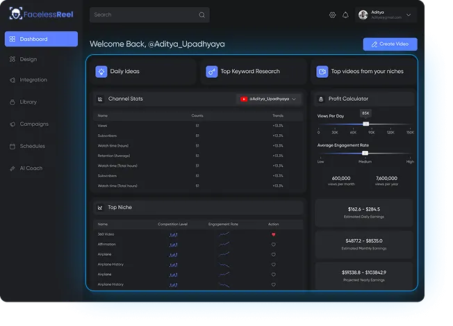 Your all-in-one dashboard that builds full YouTube and TikTok channels automatically. Just choose a niche, and the AI creates the scripts, narrations, visuals, and videos for you—no filming or editing required.